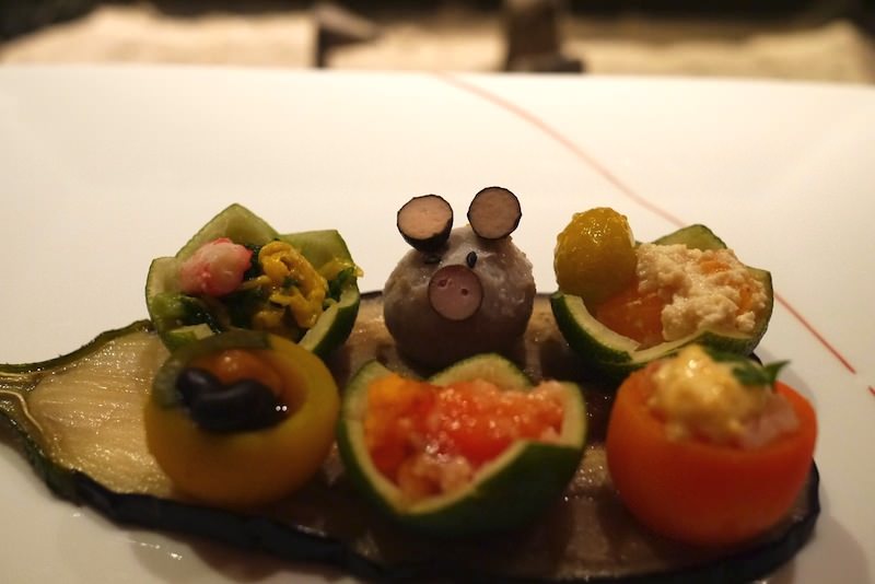 おとぎ話「三匹の小豚」をモチーフにした料理がコースでやってきます。どれもこれもかわいく丁寧な作りに、ひたすら感動するのでした。