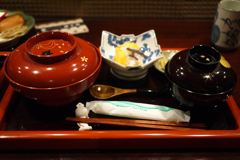 今回のオーダーは、はらこ丼。1250円で、味噌汁、おしんこ、小鉢がつきます。