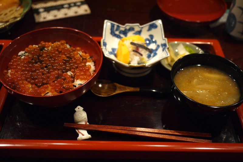 新潟県村上市。新潟市の北の方に位置するこの土地では、鮭やはらこが有名。雑誌や食べログでも人気の石田屋ではらこ丼をいただきます。